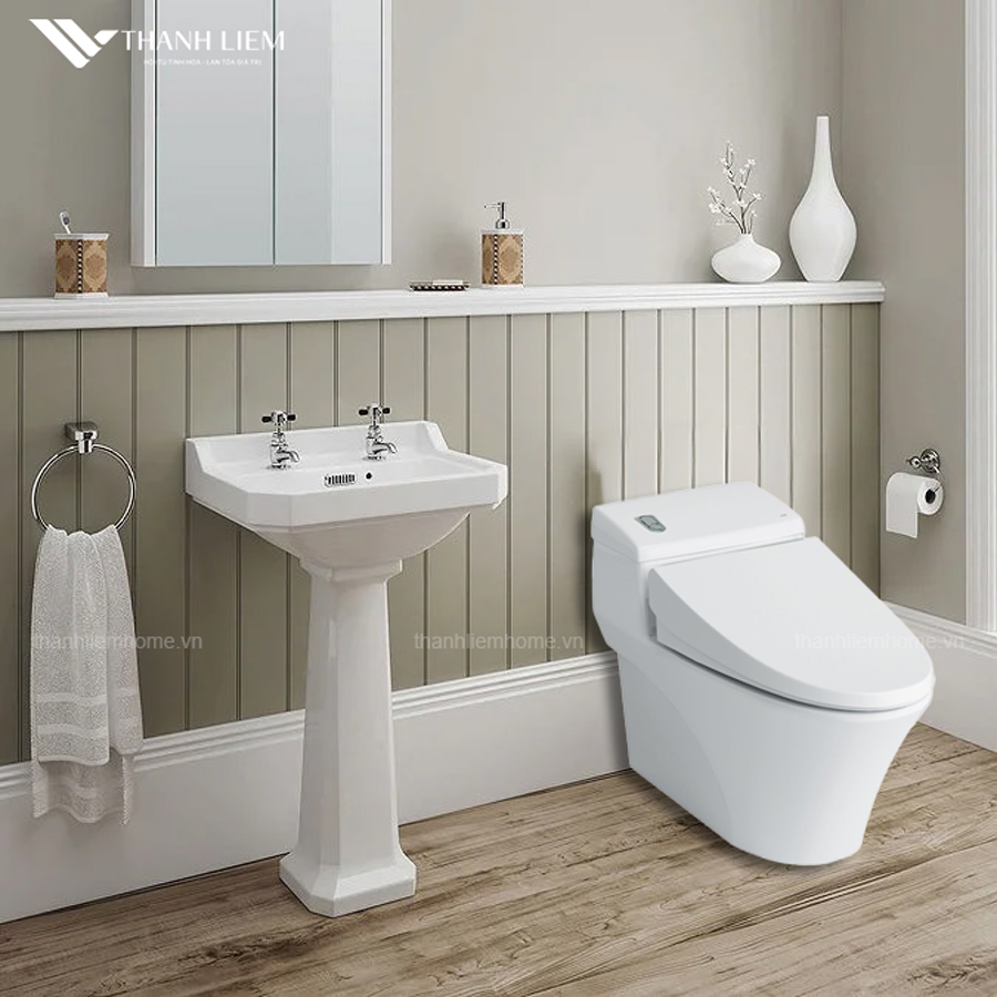 Nâng cấp linh hoạt: Thân bồn cầu có khả năng kết hợp với nhiều loại nắp Shower Toilet (nắp rửa điện tử/cơ) để tăng tiện ích.