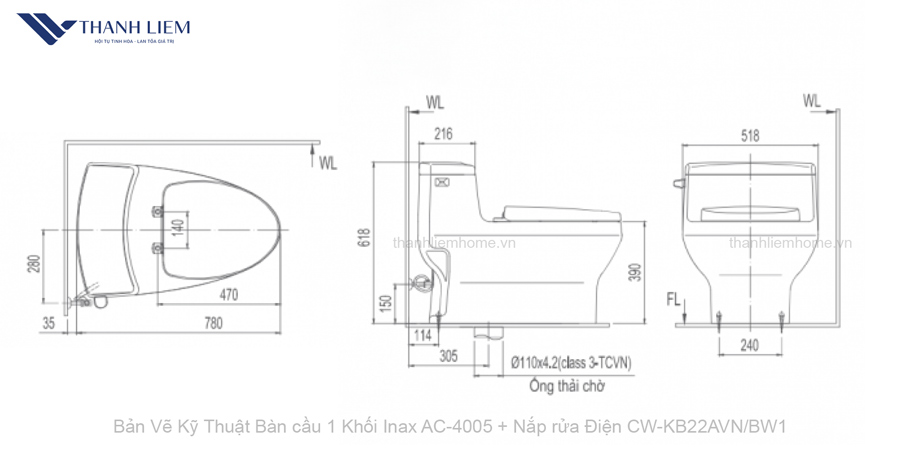 | Đặc điểm | Bồn Cầu AC-4005 | Nắp Rửa CW-KB22AVN |