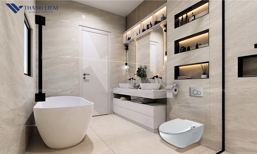 Thiết kế Treo Tường: Kiểu dáng hiện đại, tối giản, giúp tiết kiệm không gian sàn nhà và thuận tiện cho việc lau chùi.