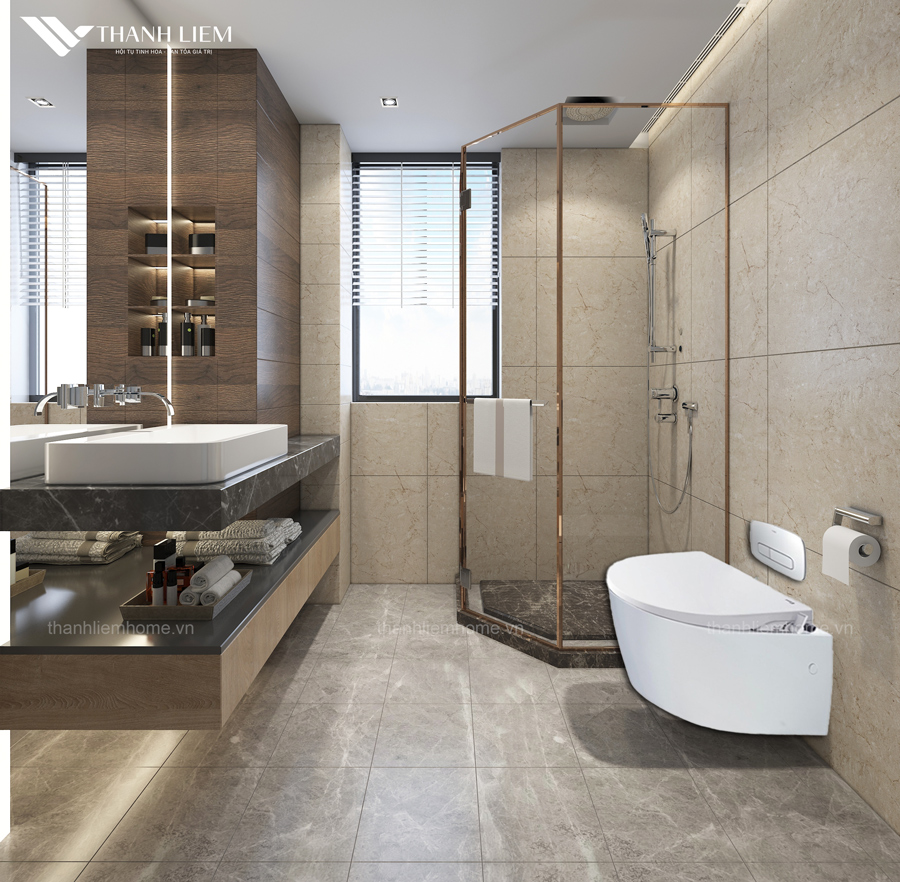 Thiết kế Treo Tường: Kiểu dáng hiện đại, tối giản, giúp tiết kiệm không gian sàn nhà và thuận tiện cho việc lau chùi.