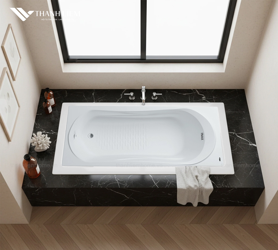 Kiểu lắp đặt: Là loại bồn tắm xây (không yếm), cho phép gia chủ tùy chỉnh thiết kế ốp lát bên ngoài theo phong cách riêng.