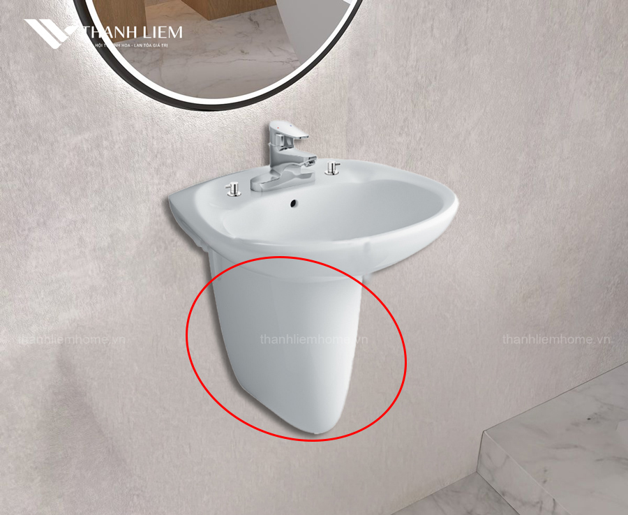 Chức năng: Chân lửng được thiết kế để che giấu đường ống cấp/thoát nước phía dưới chậu treo, đảm bảo vệ sinh và tăng giá trị thẩm mỹ cho khu vực lavabo.