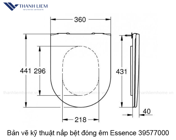 Kiểu dáng Chữ D (D-Shape): Thiết kế độc đáo, tối giản hình chữ D, đảm bảo nắp bồn cầu vừa vặn hoàn hảo với hình dáng bồn cầu Grohe Essence, tạo nên sự đồng bộ và thẩm mỹ cao.