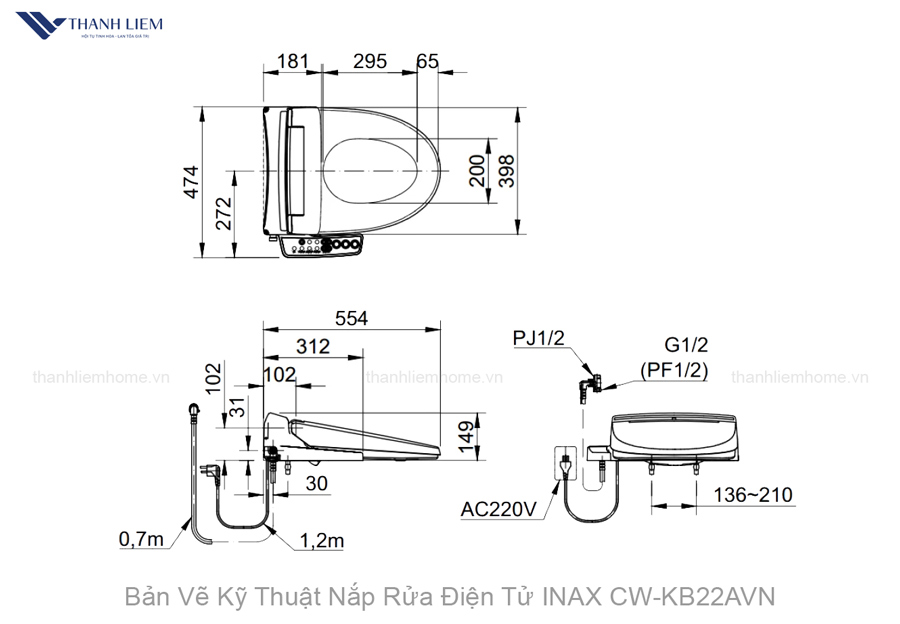 Mô tả Nắp Rửa Điện Tử INAX CW-KB22AVN