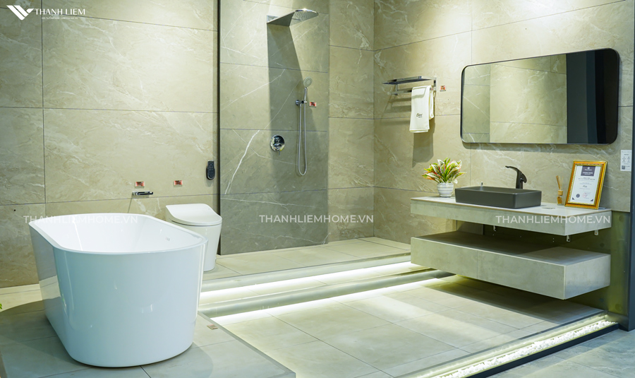 Ngoài ra, hệ thống showroom tại Thanh Liêm Home còn trưng bày nhiều sản phẩm mẫu hiện đại, giúp Khách Hàng có thể trực tiếp trải nghiệm hàng trăm mẫu sản phẩm khác nhau, từ bồn cầu, chậu rửa lavabo, vòi sen, bồn tắm, cho đến các phụ kiện phòng tắm cao cấp.