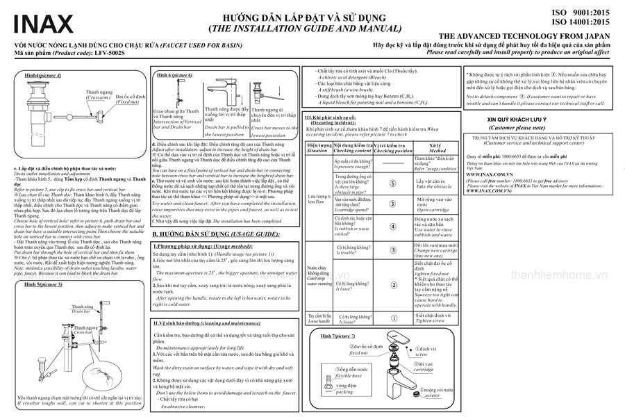 Mô tả Vòi chậu Inax LFV-5002S